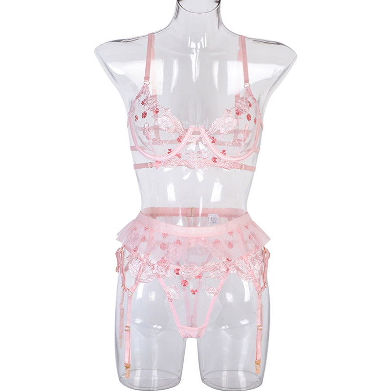 Floral Patterned Lingerie Sets with Ruffle Decoration