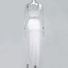 Solid Sleeveless Polyester Spandex Skirt Set with Twisted Knots Style and Slitted Long Skirt