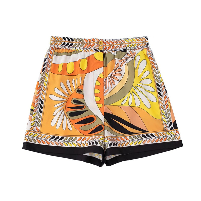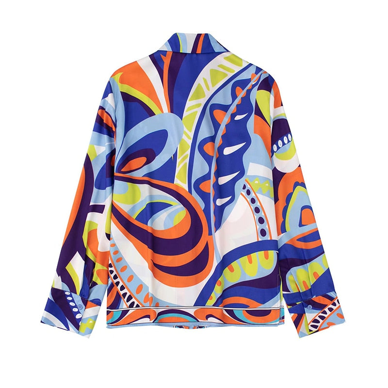 In this cool pant set, the shirt has a feminine cut and the pants are long enough to be worn on their own or tucked into boots or heels. The slim cut of the shirt means it can be styled with virtually anything and the printed pattern adds some fun color to the ensemble. The cool, versatile design is a great way to add a little fashion to your ensemble.