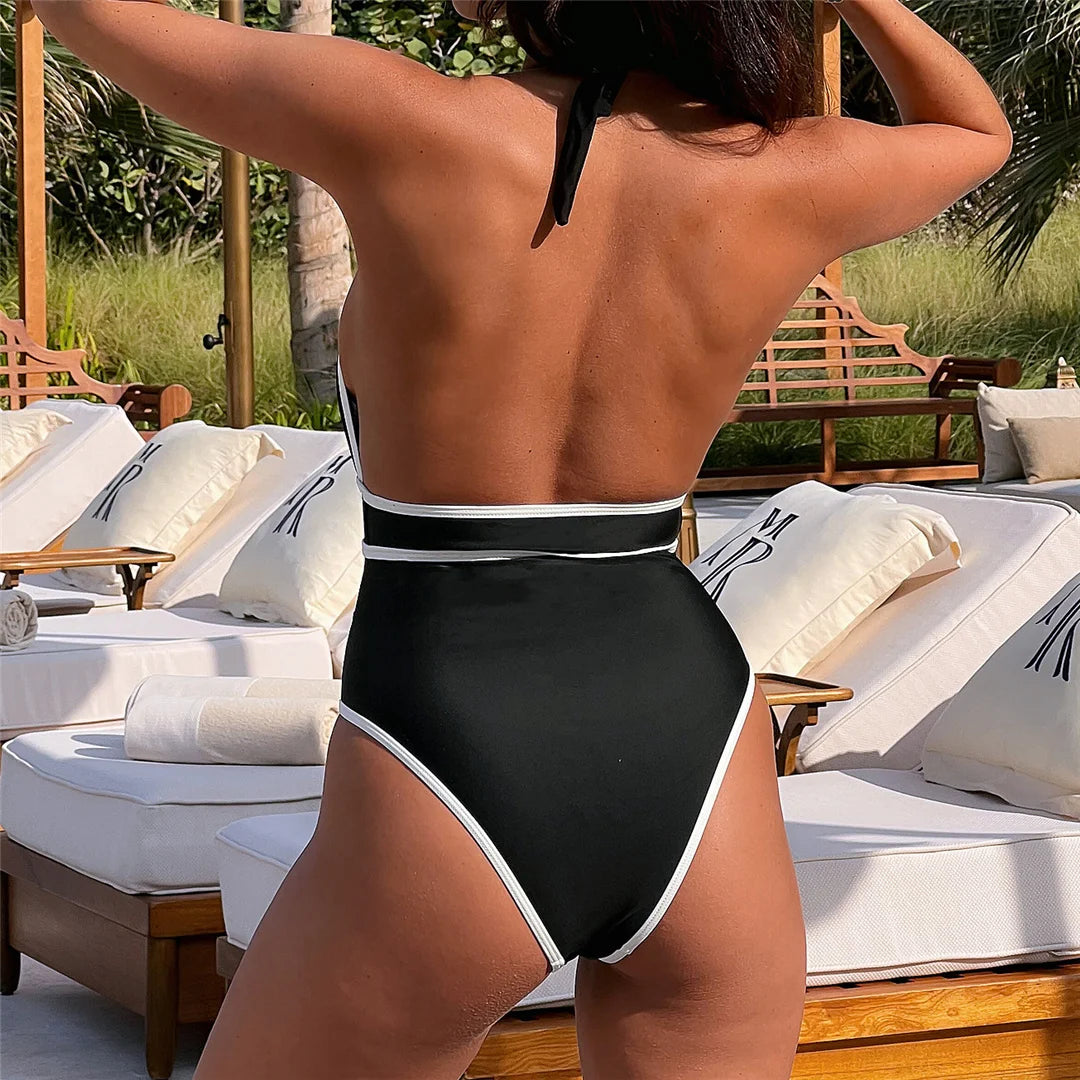 Deep V-Neck Halter Black Monokini