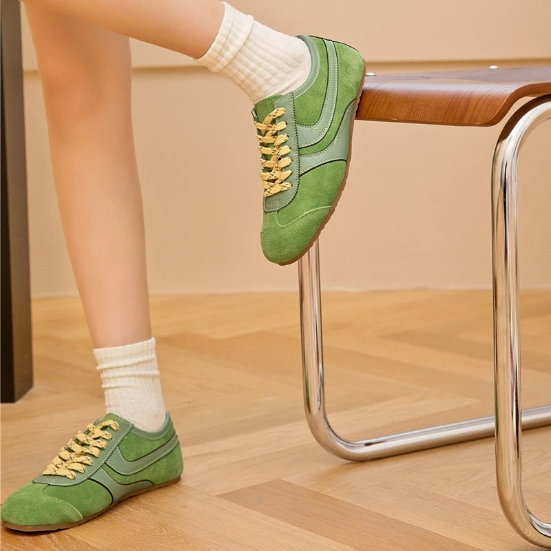 Vintage Green Brown Lace-Up Sneakers