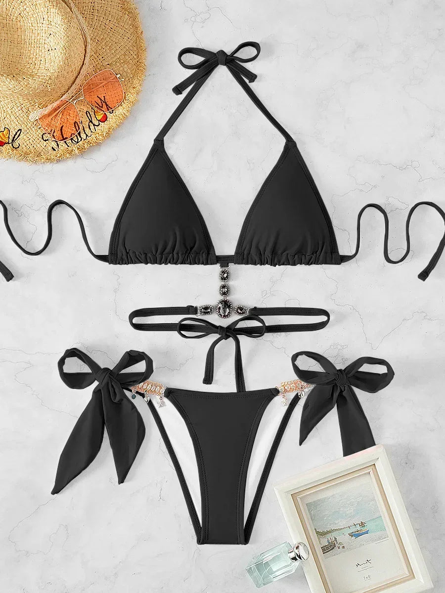 Rhinestone Diamond Decor Two Piece