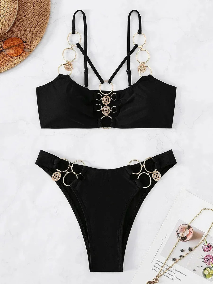 Metal Chains Halter Neck Monokini