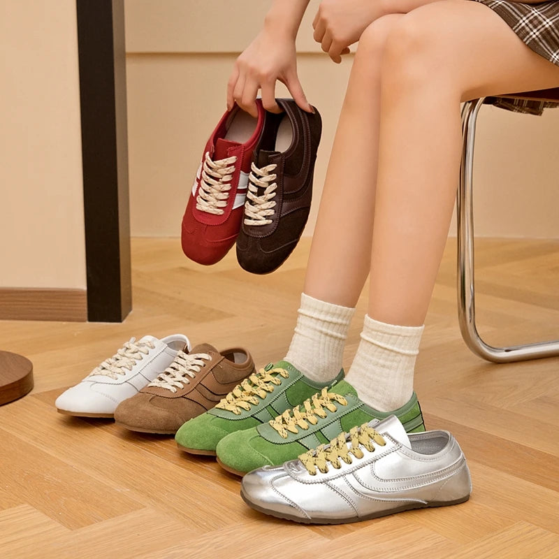 Solid Genuine Leather Lace-up Sneakers