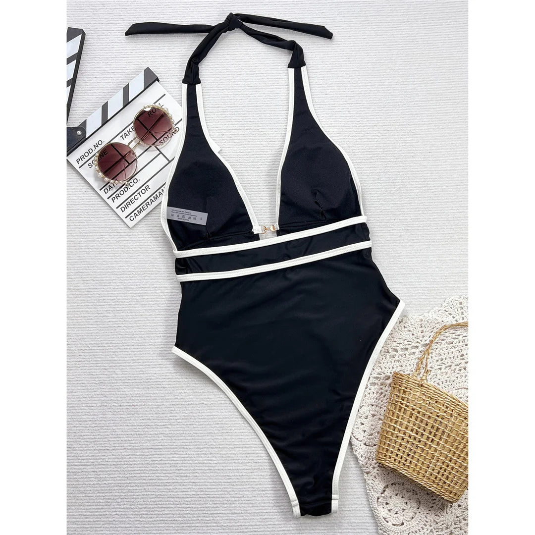 Deep V-Neck Halter Black Monokini