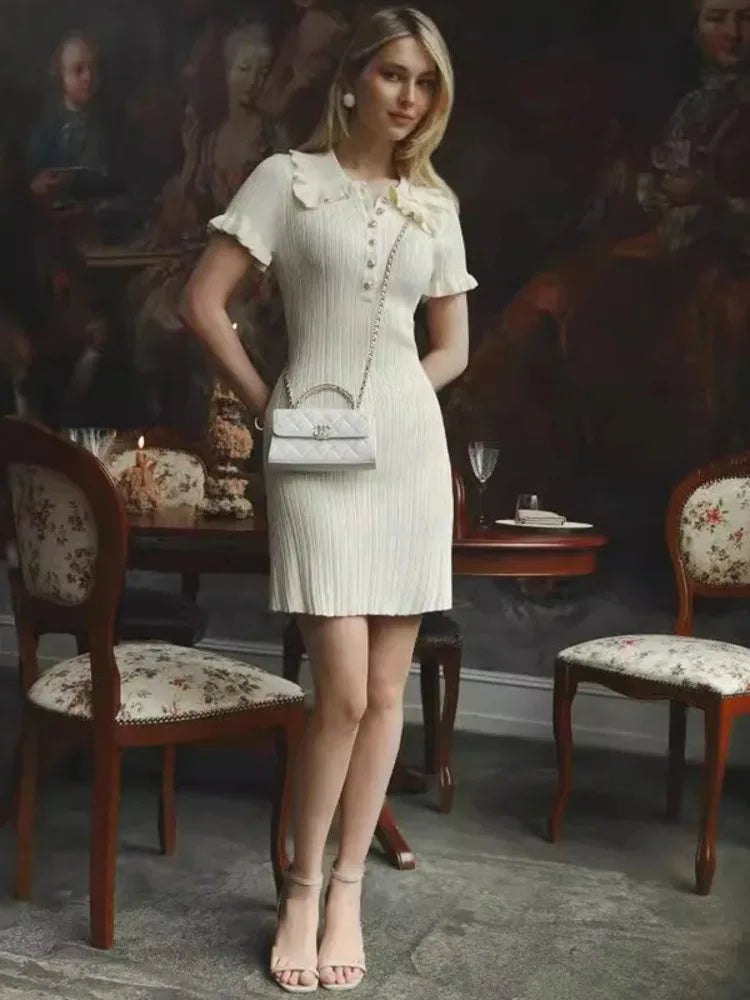 Indulge in the romantic charm of the Deeper In Love Mini Dress. This slim fit dress boasts a delicate ruffled neckline and is adorned with chic buttons. Its above knee, mini length adds a touch of playfulness, while the high-quality polyester material ensures both comfort and style.