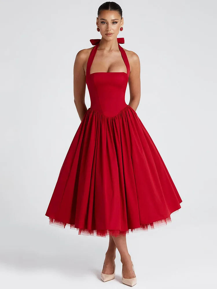 The Shape of Her Midi Dress Bold simplicity meets fearless silhouette. This A-line midi features a striking square collar that frames the neckline with architectural precision, while the clean solid design lets your presence do the talking. Crafted from a responsive polyester-spandex blend, it moves with intention and confidence. Understated drama for those who refuse to blend in.