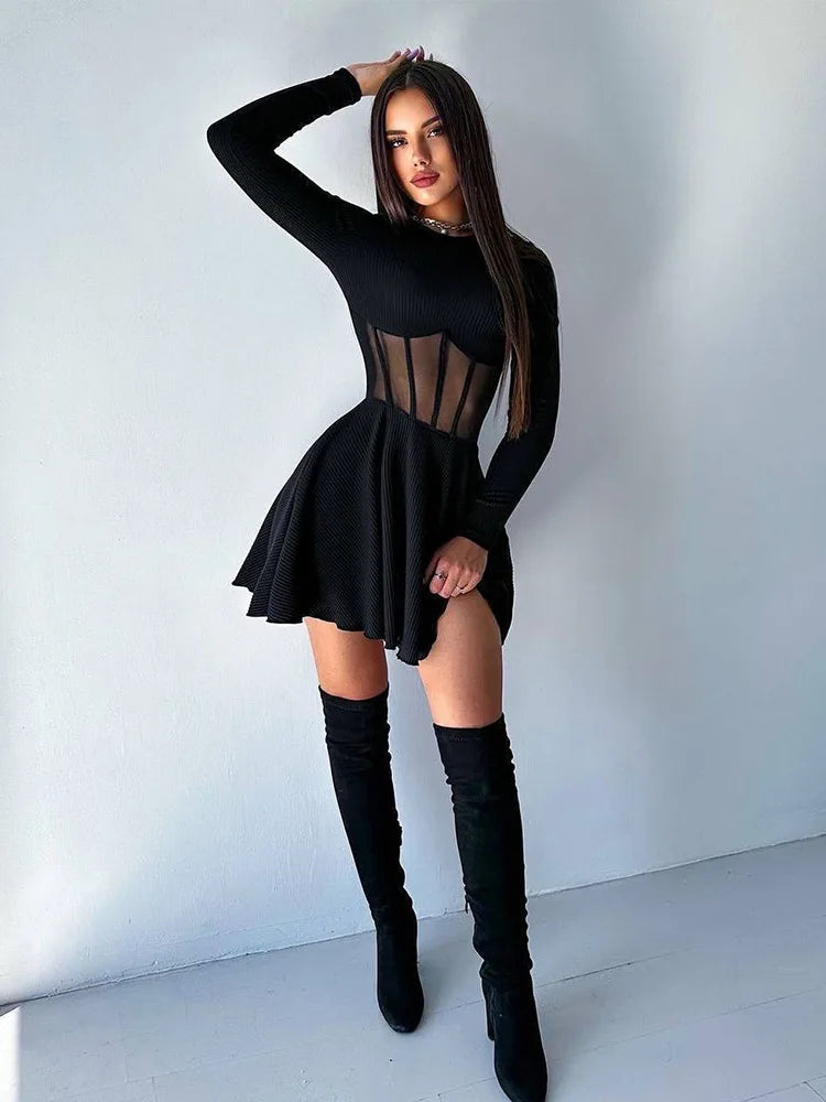 Indulge in the comfort and style of our Wanting A Shoulder To Cry Mini Dress. The A-Line silhouette and O-Neck neckline provide a flattering and effortless look, while the sheer decoration adds a touch of elegance. Made with a mix of cotton and polyester, this dress is both comfortable and durable. Perfect for any occasion!