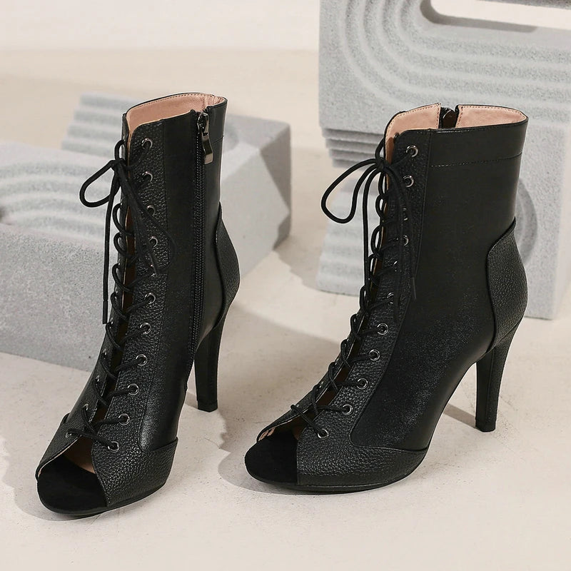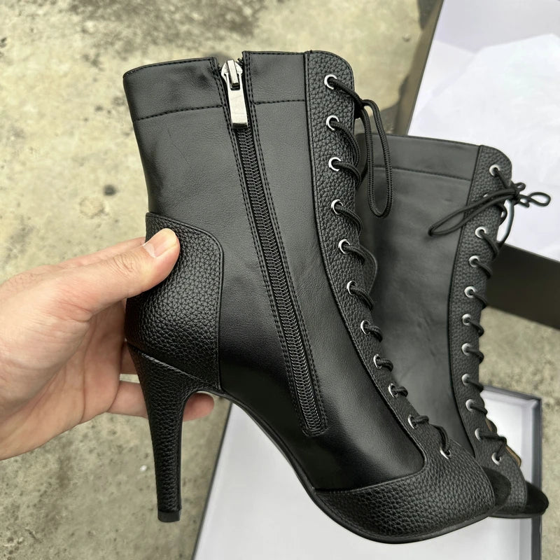 Experience the ultimate comfort and style with Whiplash Moments Ankle Boots. Featuring a peep toe sandal design, made with high-quality PU material and a rubber outsole for durability. The cover heel back counter and solid pattern add a sleek touch. Elevate your look with these must-have boots!