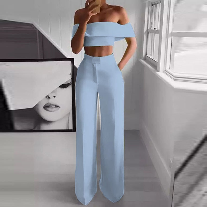Polished and classy, these women's pants sets are a must-have for any stylish wardrobe. Designed with a flattering off-the-shoulder crop top, they're made of premium polyester to keep you cool and comfortable all day long. Pair these stylish bottoms with an equally stylish top or wear them separately for a look that's all your own.