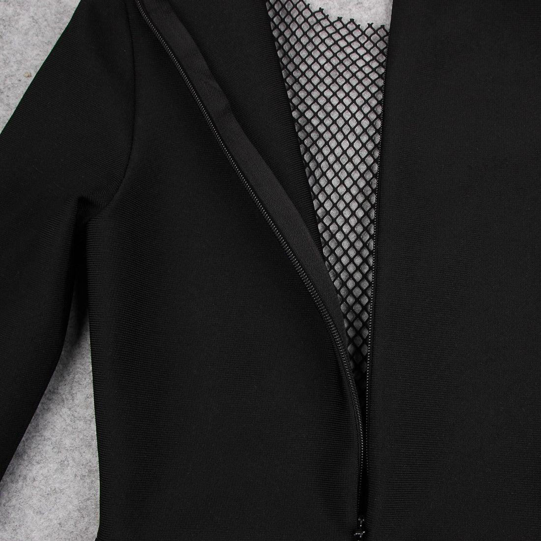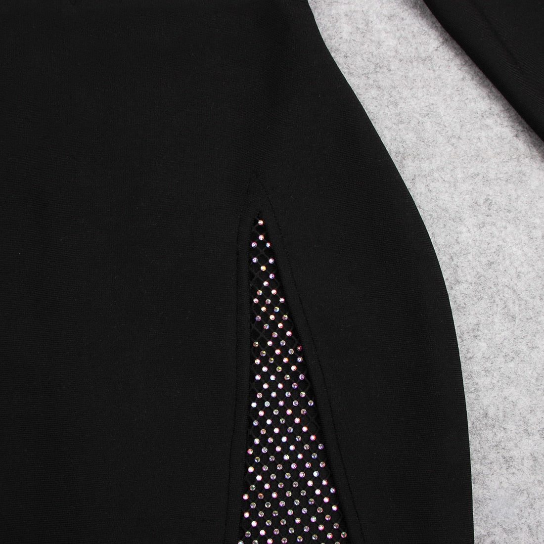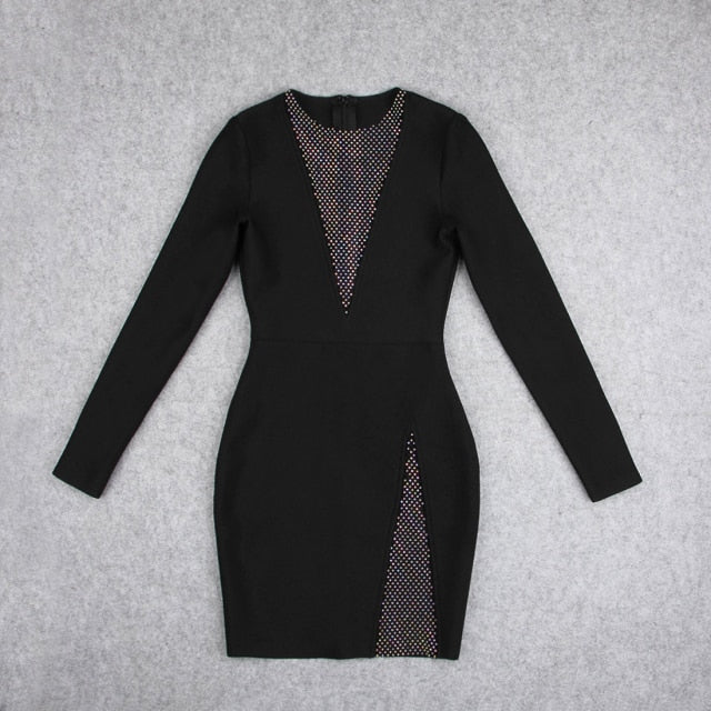 Long-Sleeved Bodycon Mini Dress with Rhinestone Applique Decoration