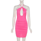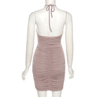 Style meets comfort in this cute and stylish mini dress that is sure to spice up your casual wardrobe. The ruched design on the back is great for dressing up or down. A cute and playful halter neckline is the perfect way to show off your figure.
