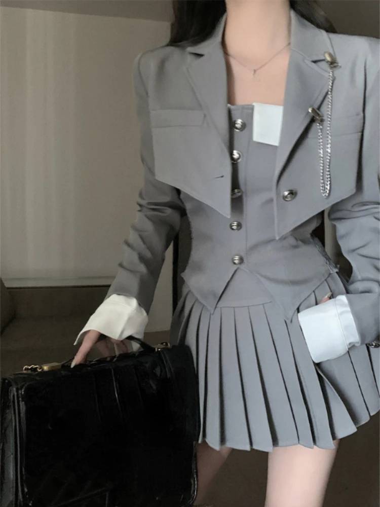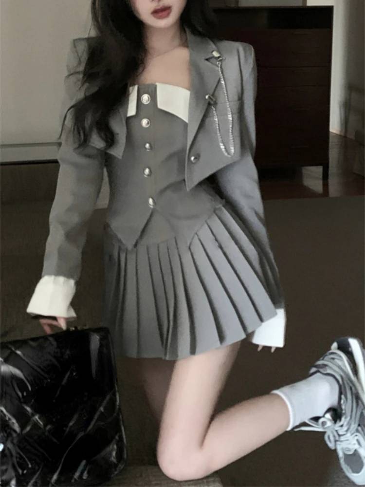 Effortlessly elevate your style with our skirt set. This solid a-line skirt set is made from polyester for a comfortable fit. Leave your troubles behind and make a statement in this stylish set.