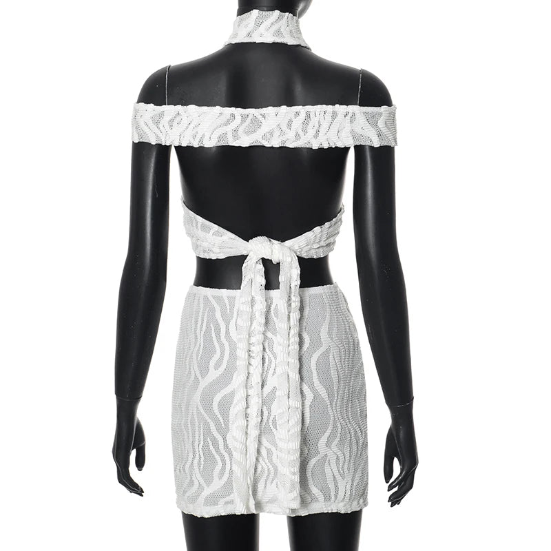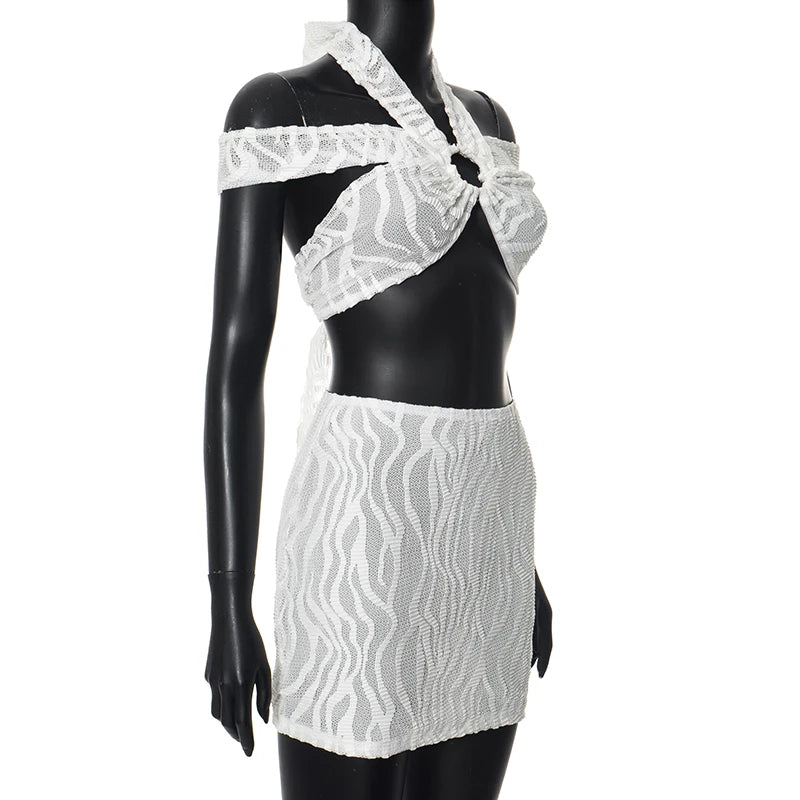 Experience effortless elegance with our Save Me From Ruin Skirt Set. Made from a blend of cotton and polyester, this set boasts intricate lace and hollow out details, secured by a beautiful lace closure. Elevate any occasion with this stunning ensemble.