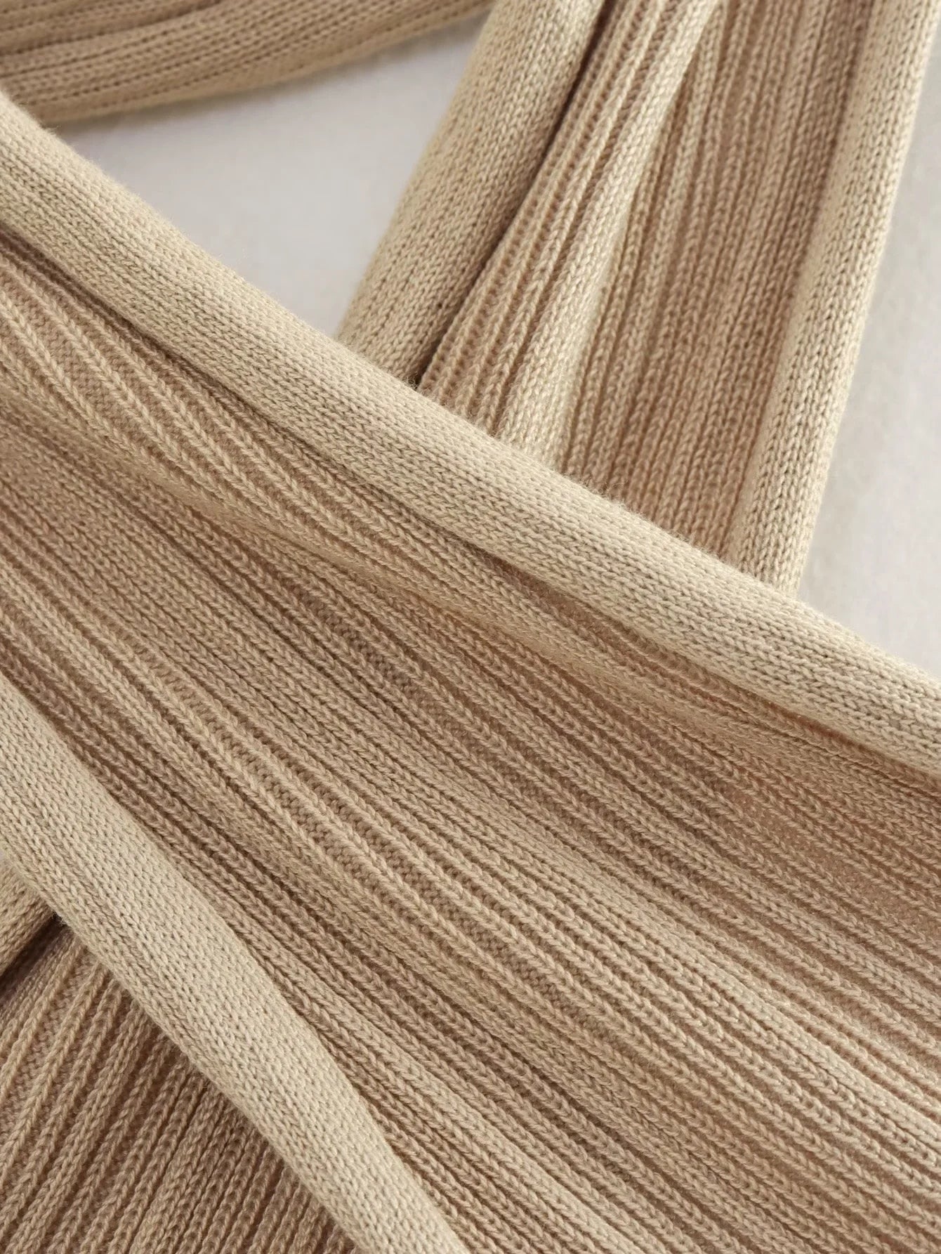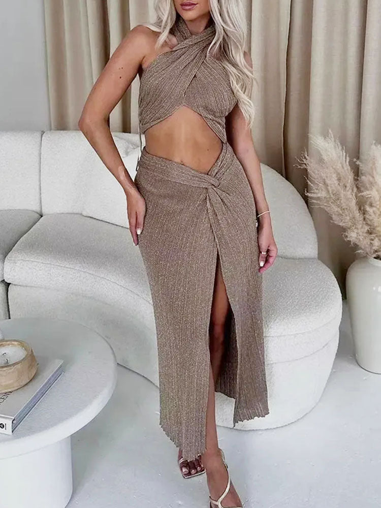 This fashionable skirt set is made of polyester in an off-shade for a classic look. The criss-cross design gives it a unique flair, making it perfect for everyday wear or a special occasion. Add a splash of style to any wardrobe with this timeless set.