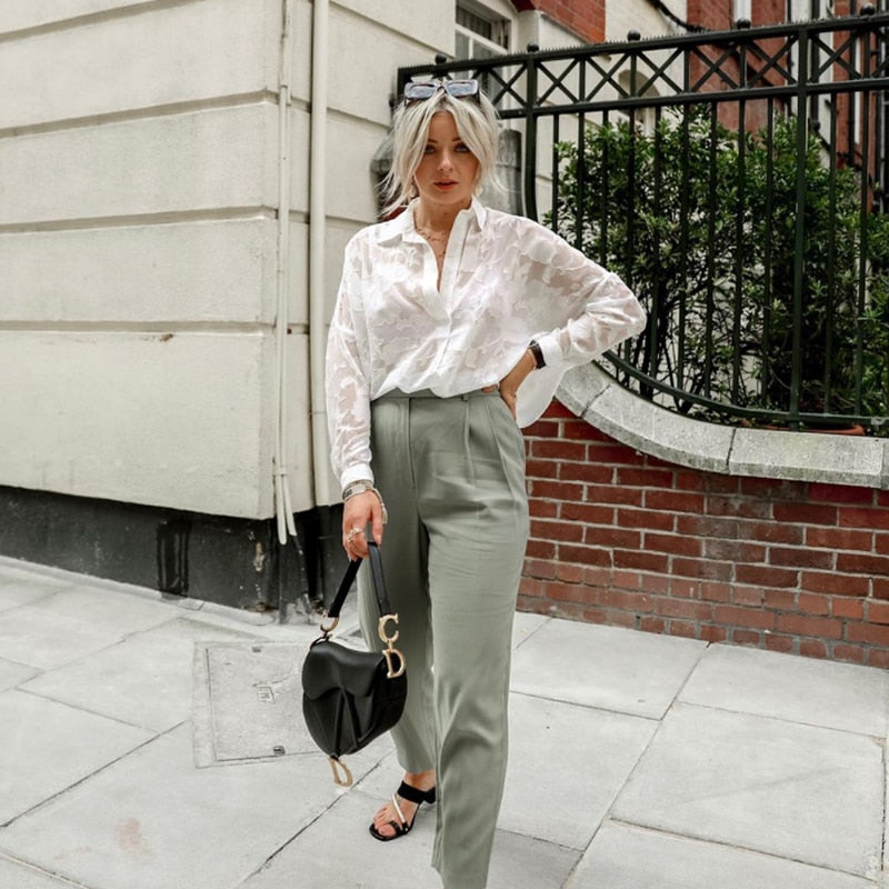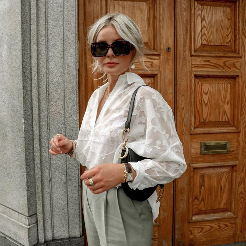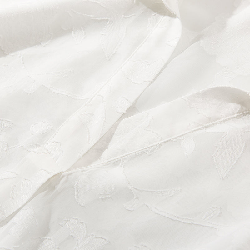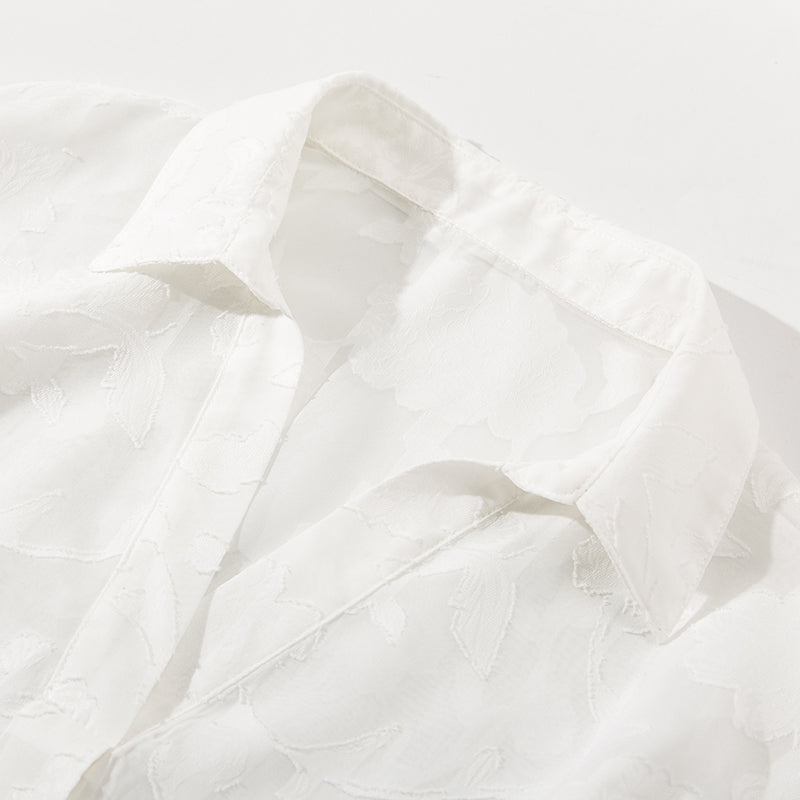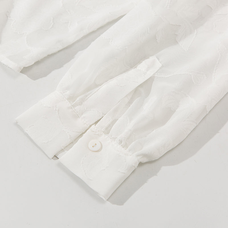 Long-Sleeved Pullover Polyester Blouse with Subtle Floral Pattern