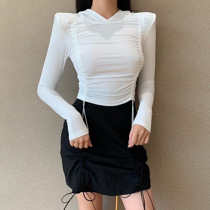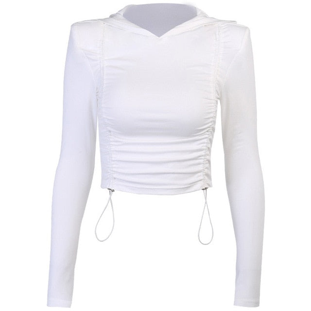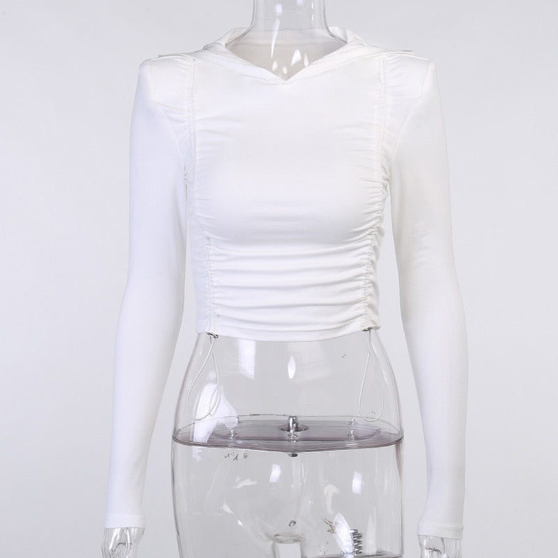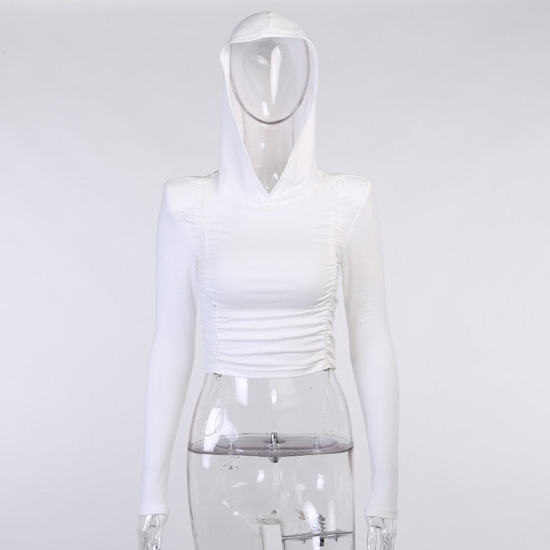 Cotton Polyester Solid Patterned Long Sleeved Hooded Tee