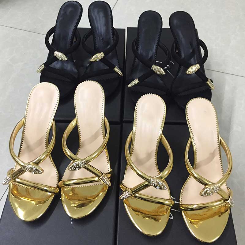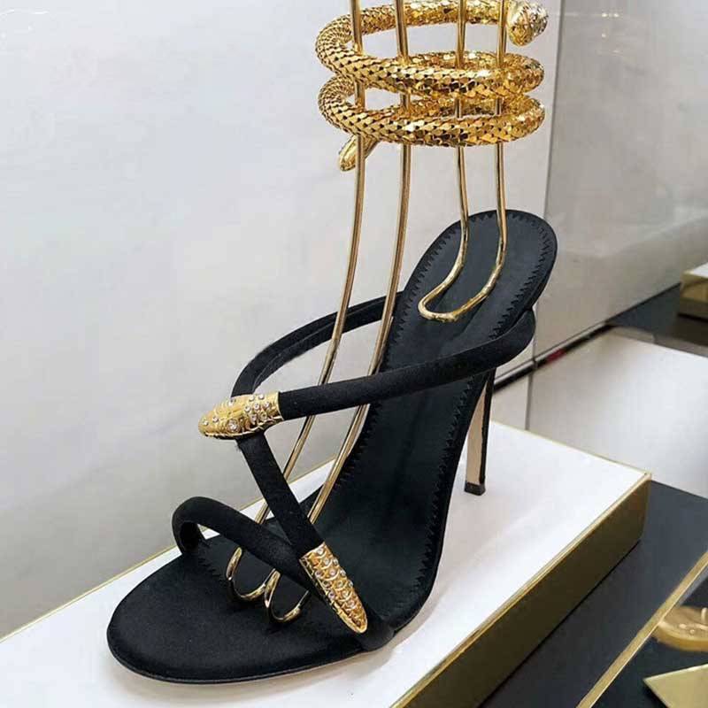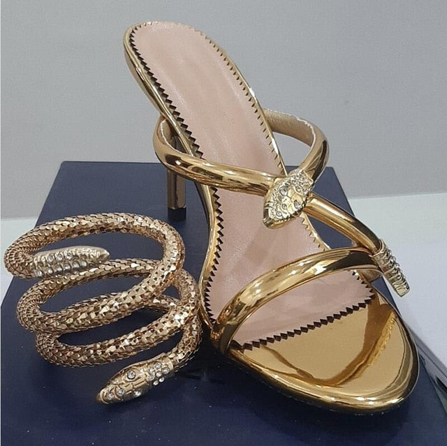 Patent Leather Heeled Sandal with 1 Piece of Golden Snake Ankle Decoration