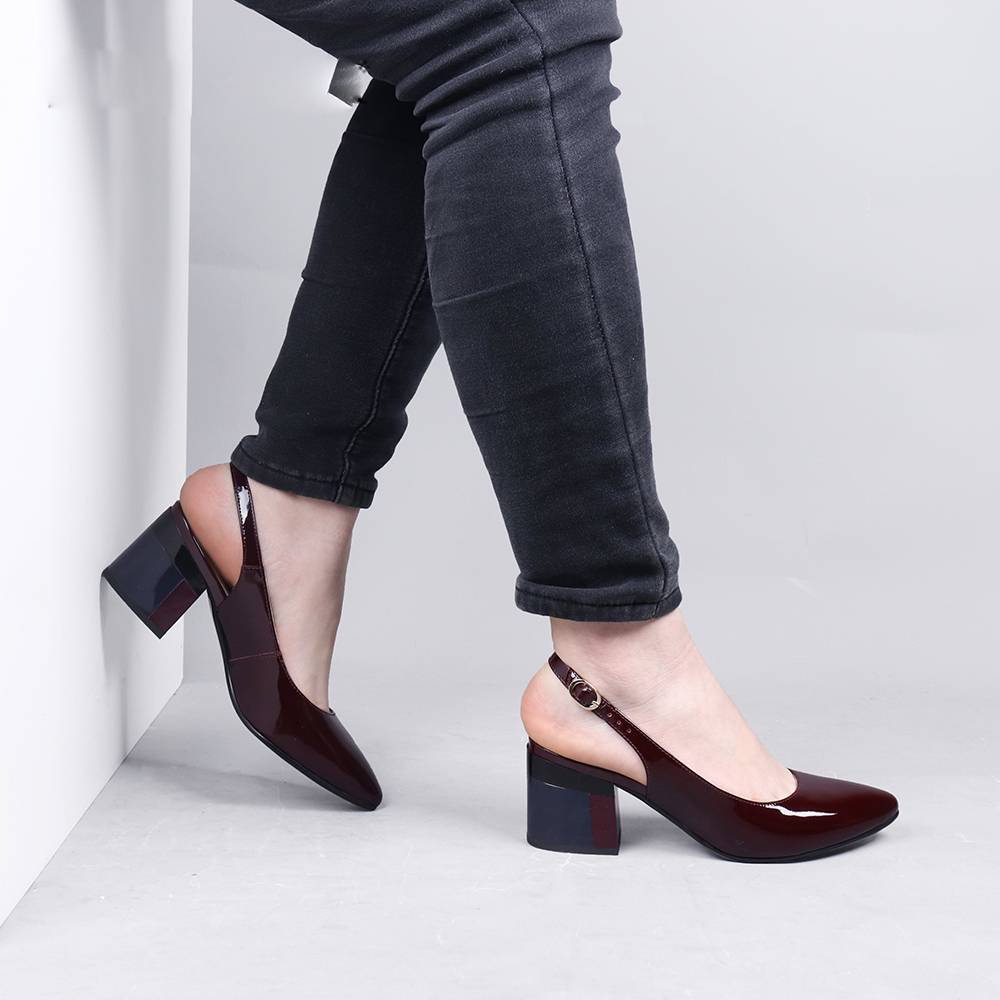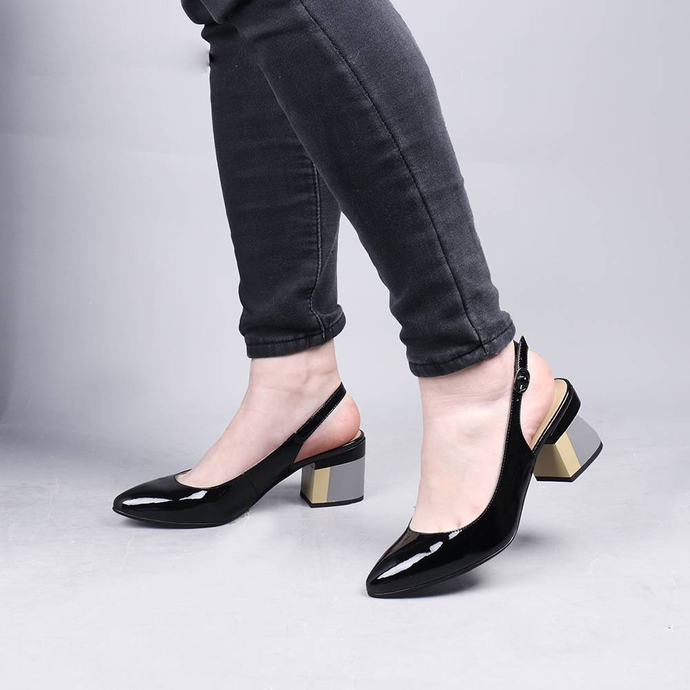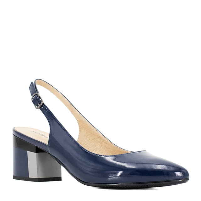 Genuine Leather Back Strapped Colorful Square Heels Women Sandal