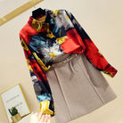 Long-Sleeved Turn Down Collar Shirt with Colorful Flower Print Pattern