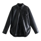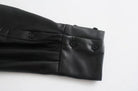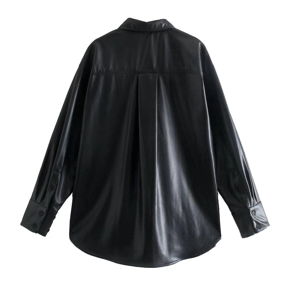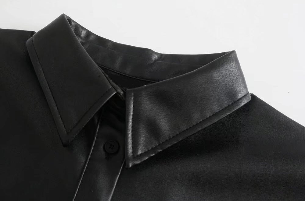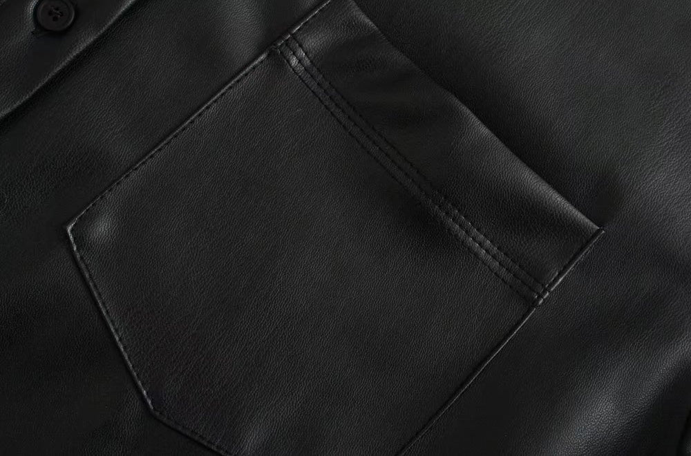 This leather shirt is great for any time of the year. The rich black of this leather shirt has an understated style that you can also wear as outer.