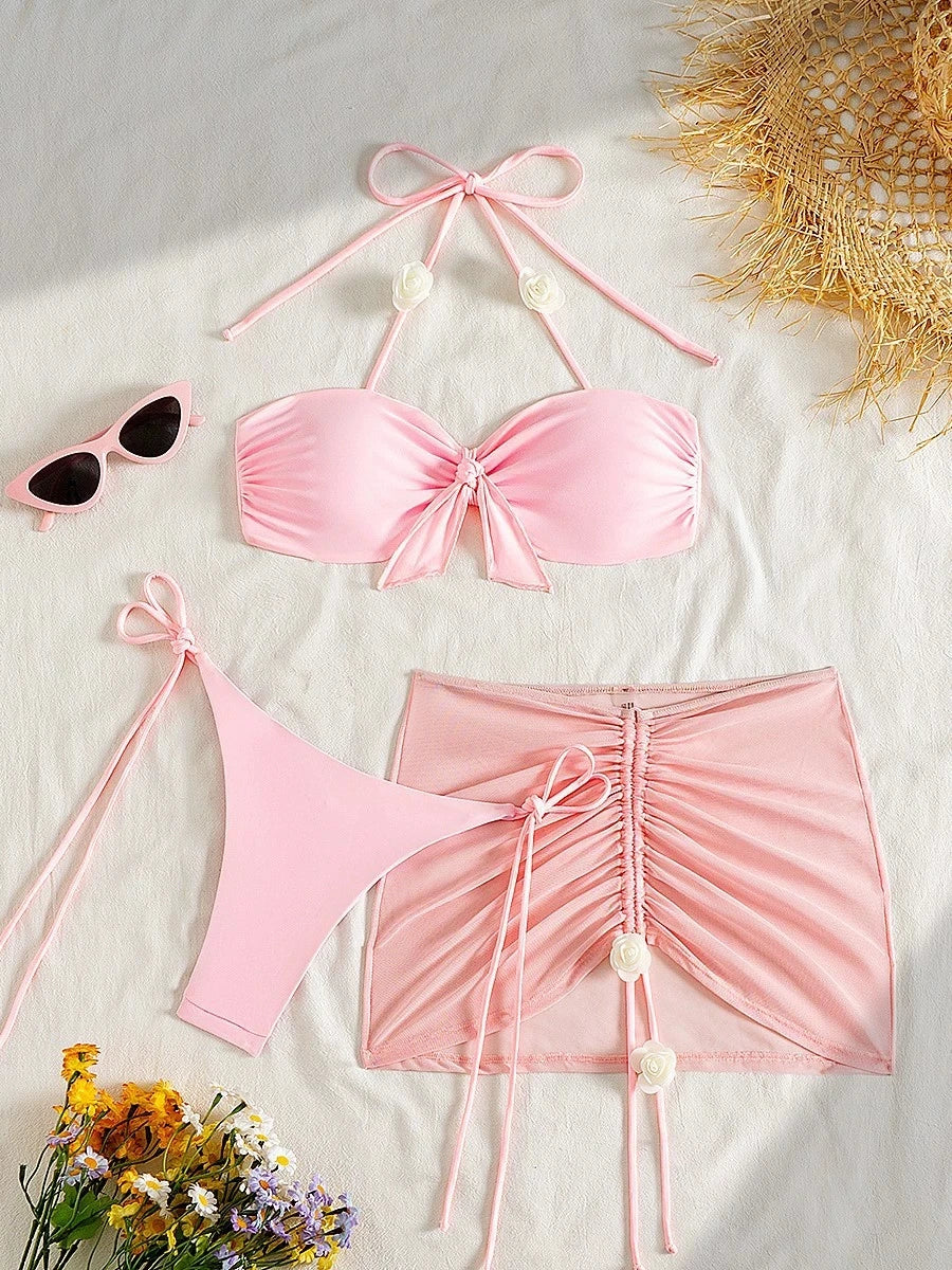 The Peaches And Cream Bikini Set combines stretchy spandex and durable terylene for a sleek, solid look that hugs your body with confidence. Designed to stand out, this daring swimwear lets you embrace bold style and effortless comfort under the sun.