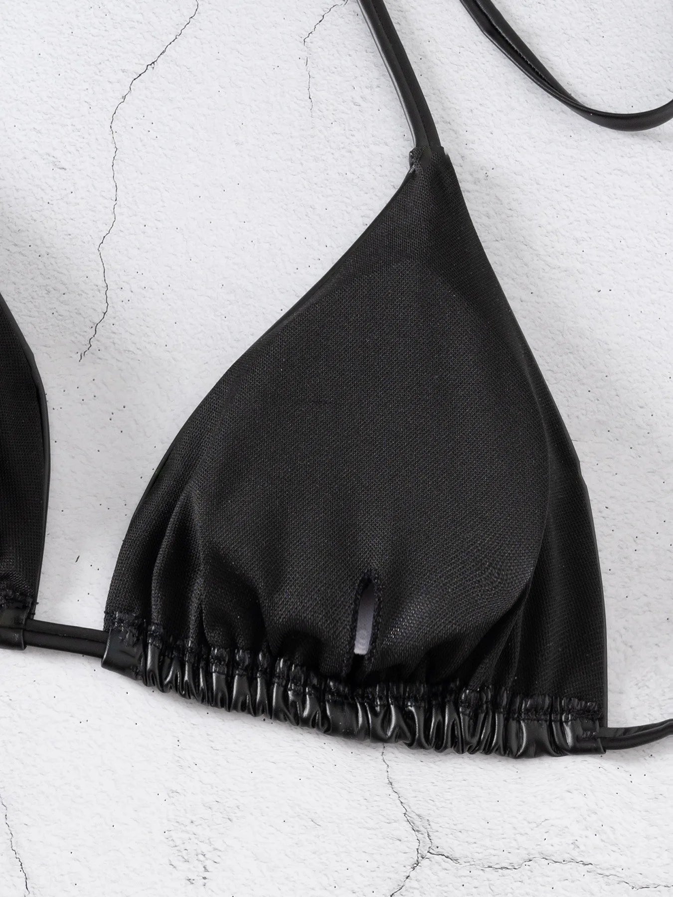 This daring two-piece set combines sleek polyester and stretchy spandex for a comfortable, figure-flattering fit. Its solid pattern and wire-free support offer freedom of movement and bold style, perfect for making a confident statement wherever you go.