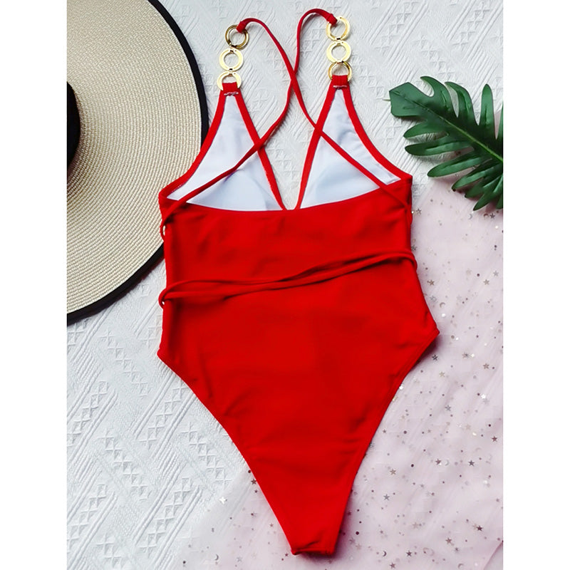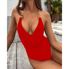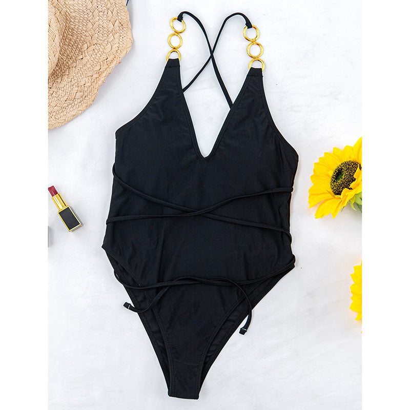 Halter One Piece Bikini with Spaghetti Straps and Chain Decoration