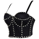 Solid Polyester Bustier with Beads Decoration and Adjustable Strap