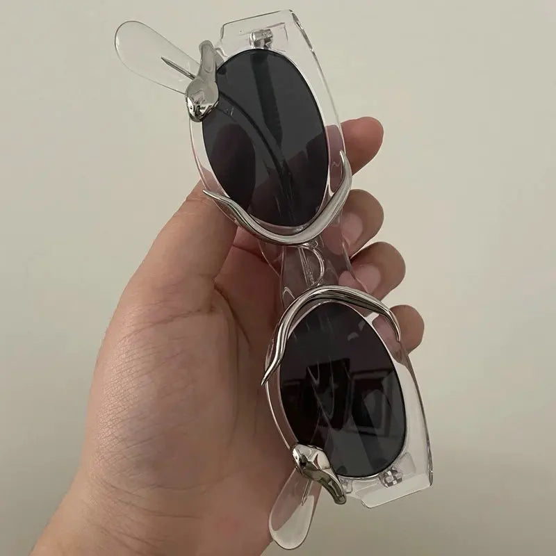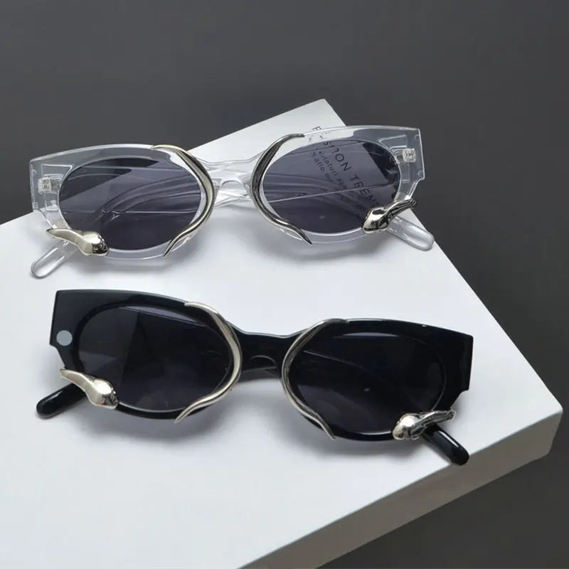 Experience elegance in a new light with our Eclipsed Elegance Oval Sunglasses. These unique sunglasses feature an oval frame shape and fashionable applique decorations, adding a touch of sophistication to any outfit. Make a statement and elevate your style with our Eclipsed Elegance sunglasses!