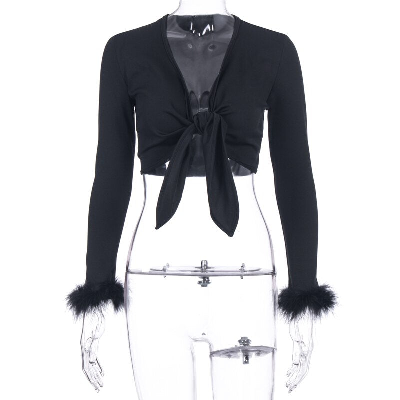 Introducing the Our First Love Crop Top, designed with a solid pattern and long sleeves. With feather decoration details, this top is both stylish and versatile. Perfect for any occasion, you can trust this high-quality crop top to make a lasting impression.