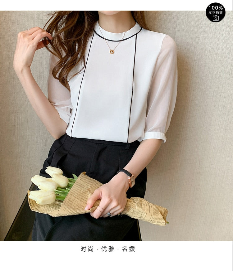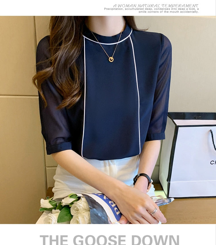 This women's blouse is a stylish and versatile piece that has a versatile design that can be worn with a variety of outfits. Offering a simple o-neck, this half-sleeve blouse has a soft chiffon material that is great for the summer season. The distressed look and soft feel make this a versatile piece that is easy to wear and comfortable to wear.