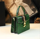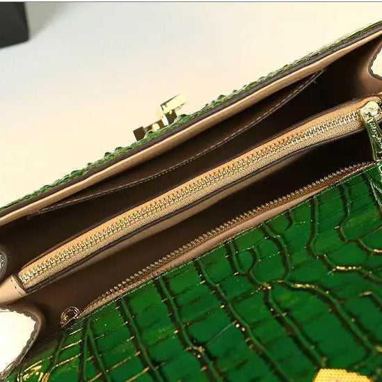 Crafted from genuine leather with a striking alligator pattern, the Her Private Resolve Handbag commands attention with its bold aesthetic. This statement piece combines luxurious materials with an unapologetic design that refuses to blend in. Perfect for those who wear their confidence on their sleeve—or rather, on their arm. Make a move that turns heads.
