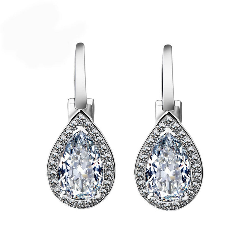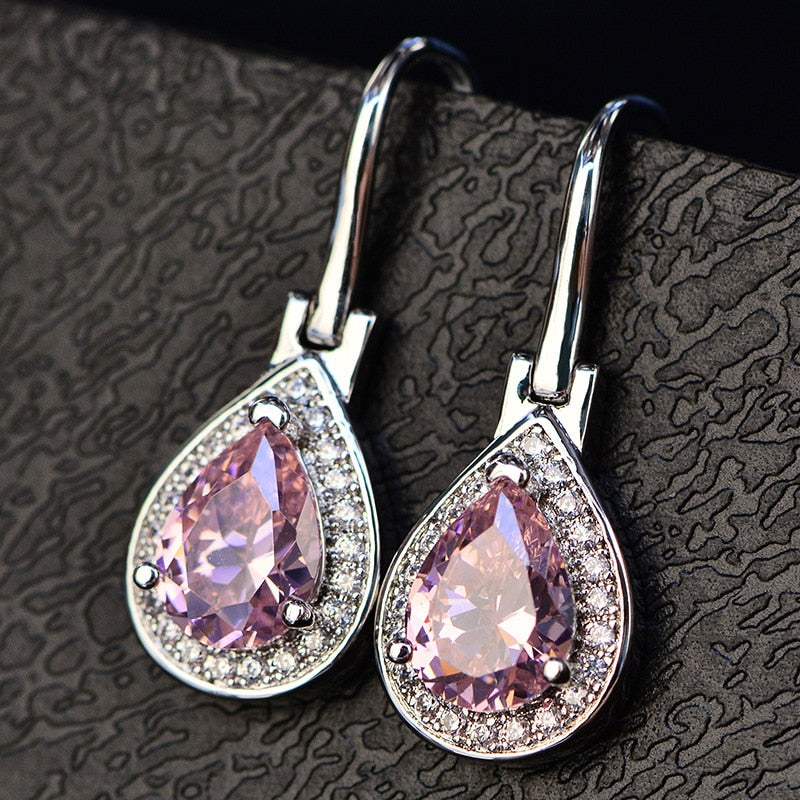 Office Style 925 Sterling Silver Water Drop Sapphire Amethyst Gemstone Woman Earrings