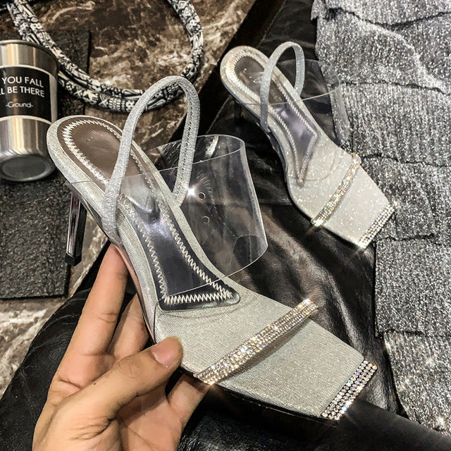 Women Heels Sandals Gladiator Style with PVC and Rubber Material
