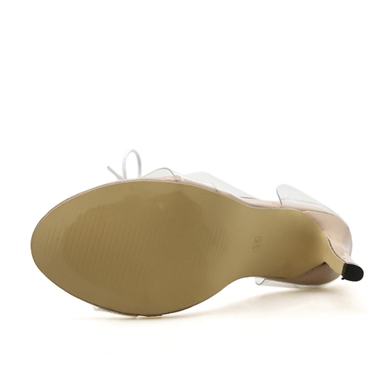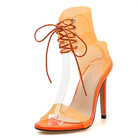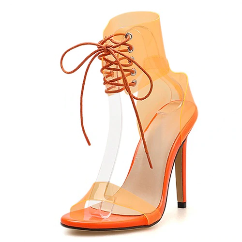 Transparent PVC Jelly Lace Up Open Toe Thin Heels Women Sandal