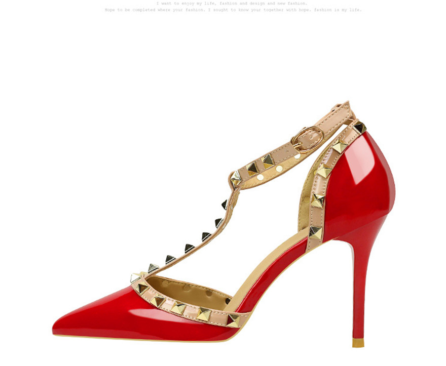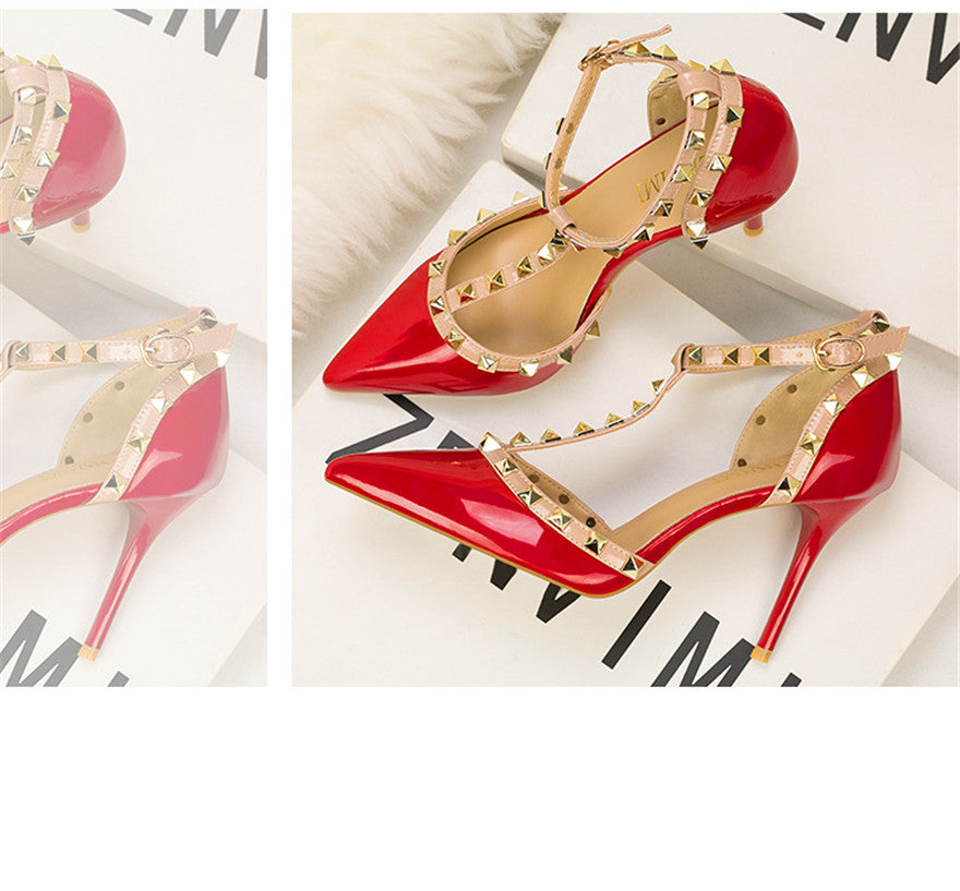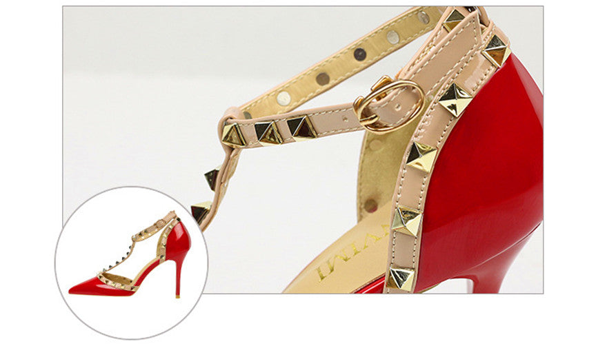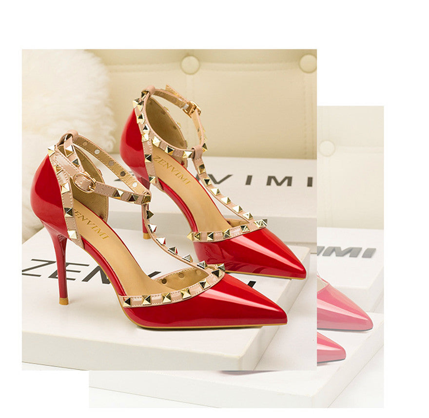 Rivet Details Solid Color PU Leather High Heel