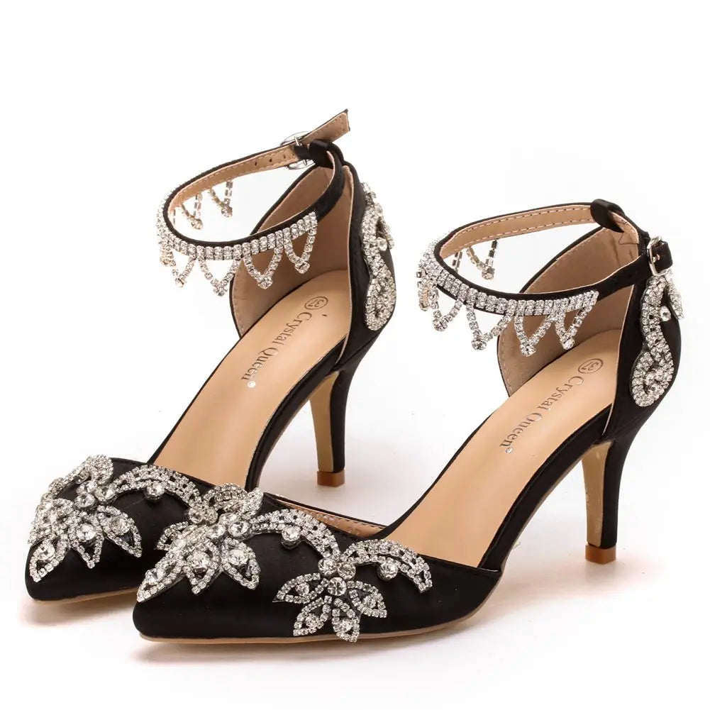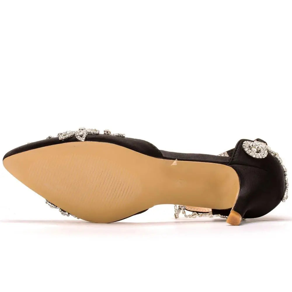 Elevate your style with our Been Here For Days Pump Shoes! Crafted with delicate silk and adorned with sparkling rhinestones, these heels will surely make a statement. Perfect for any occasion, these shoes will be your go-to for days to come.