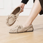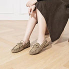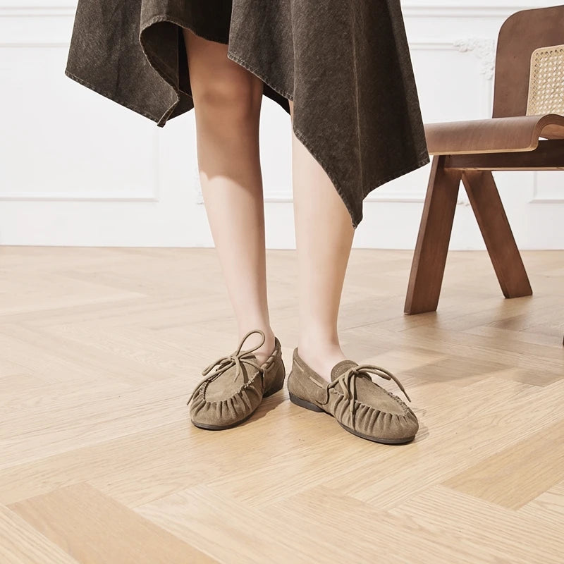 Elegant bow tie flat loafers crafted from soft suede for a refined, comfortable everyday look. The signature bow tie detail adds a touch of sophistication to any outfit, while the flat sole ensures all-day wearability. Perfect for casual outings, office settings, or weekend adventures. Slip-on design makes dressing effortless.