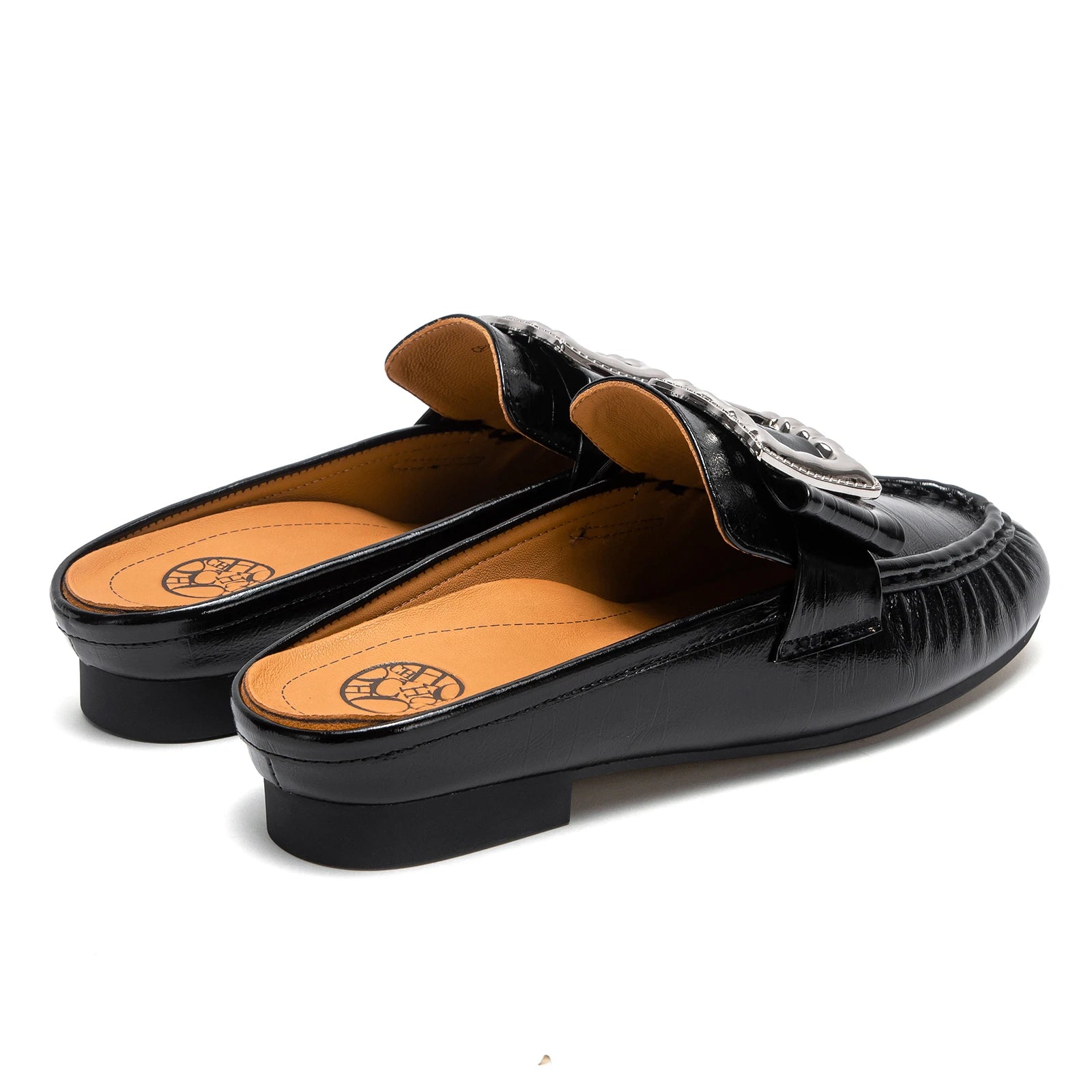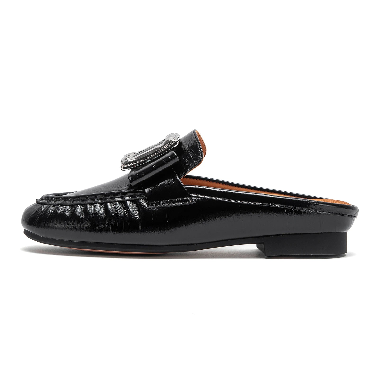 Square Appliques Leather Mules Shoes