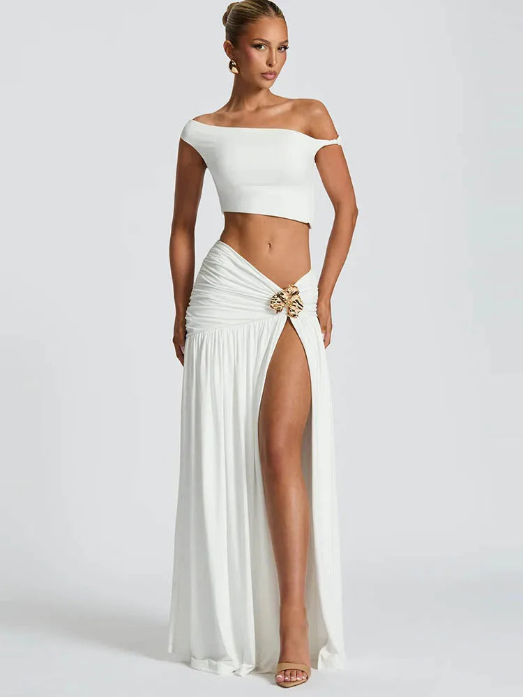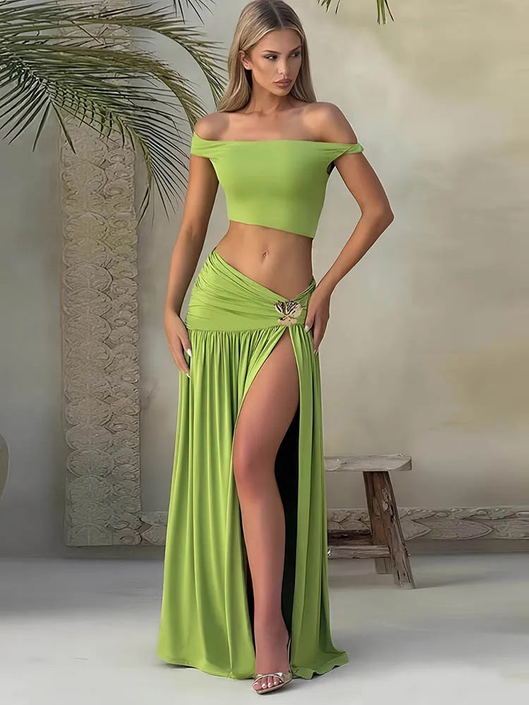 Make a bold statement with the Crown On Repeat Skirt Set. This floor-length skirt, crafted from a sleek blend of spandex and polyester, offers a daring silhouette that moves with confidence. Perfect for those who want to stand out, its stretch fabric ensures comfort while commanding attention wherever you go.