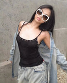Danger Feels Good Tank Top Push boundaries in this bold cotton tank, reinforced with striking rivet detailing that commands attention. Raw, unapologetic style meets comfort—perfect for those who refuse to play it safe. Make a statement that's impossible to ignore.