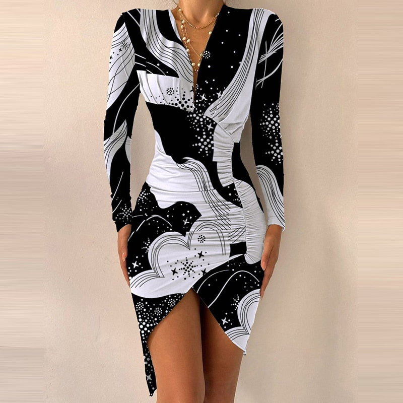 This basic mini-dress has become a popular choice for any stylish woman who wants a distinctive dress that she can wear on any occasion. The classic and stylish look is sure to become a staple in your wardrobe. A sexy V-neck adds a flattering touch to this timeless dress. The full-length sleeve adds a feminine touch that is so flattering to your look. You'll look and feel the best in this sophisticated style that is so easy to wear. Last but not least, these dresses are made of polyester fabric that is durable and easy to care for.