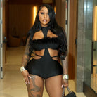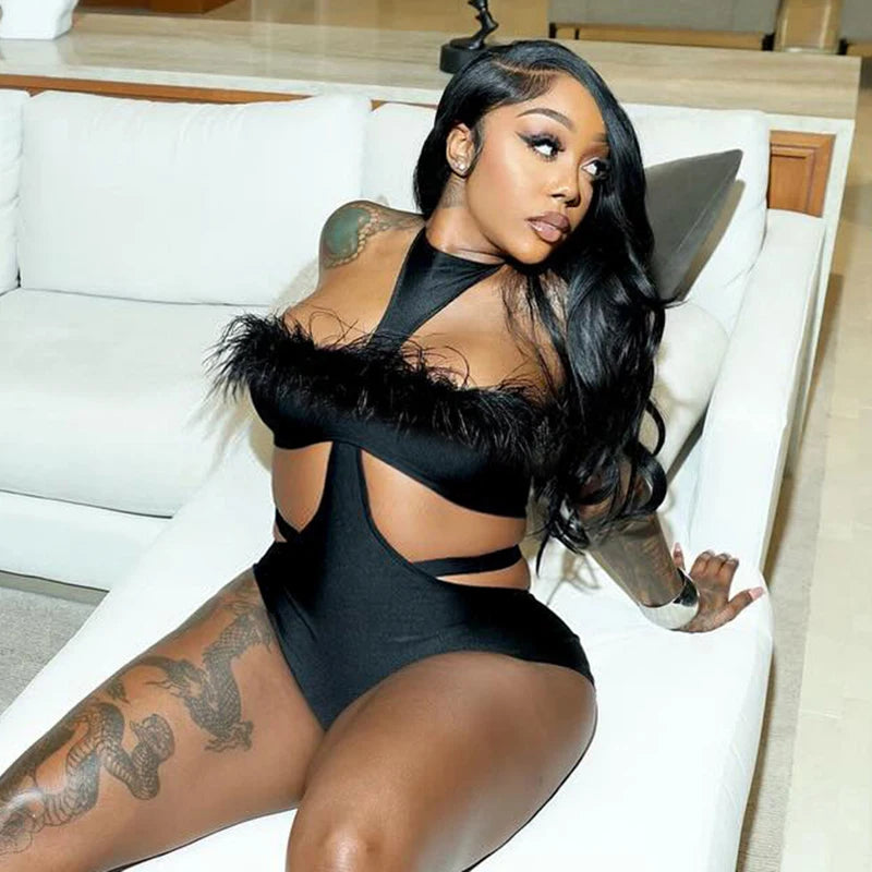 The Firelight Between Words Romper features daring hollow-out details paired with luxurious fur accents, creating a striking contrast that commands attention. This bold design blends edgy style with plush texture, perfect for those ready to stand out and make a fearless fashion statement.