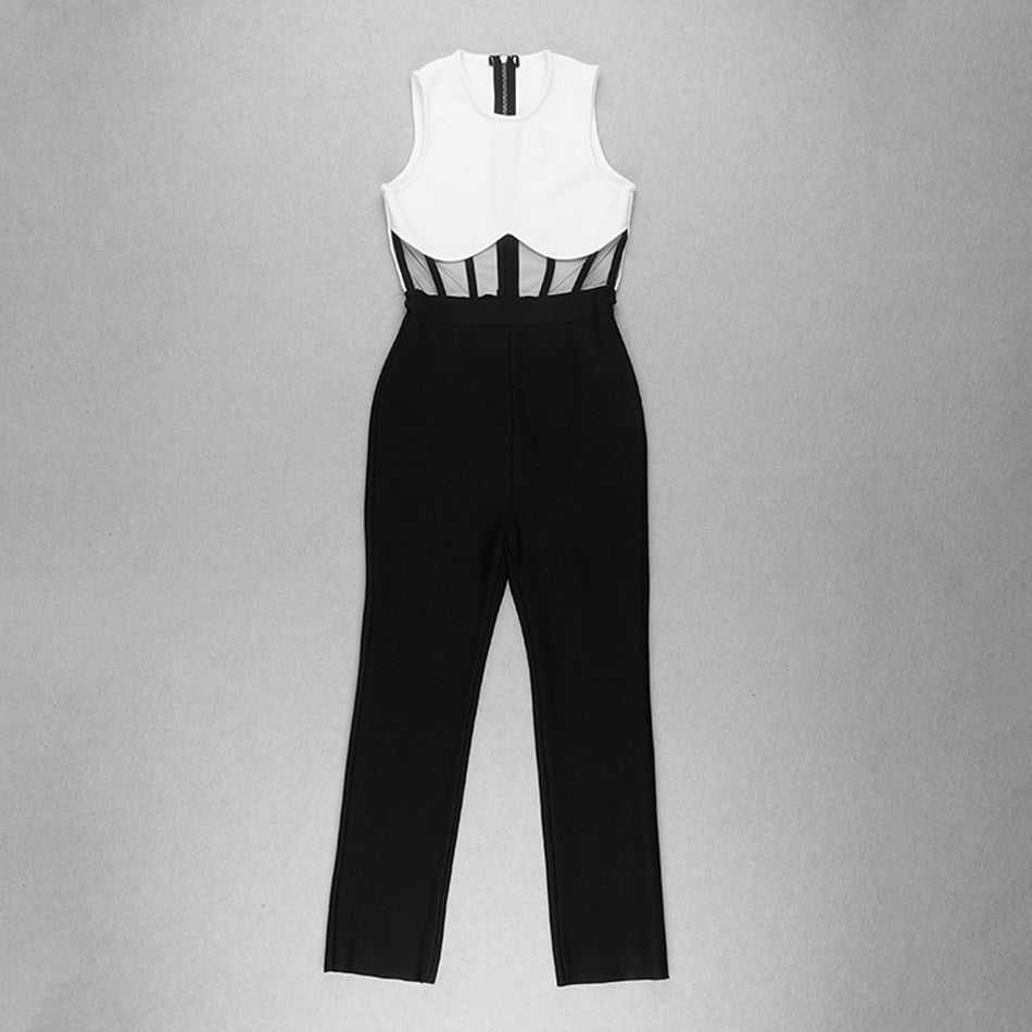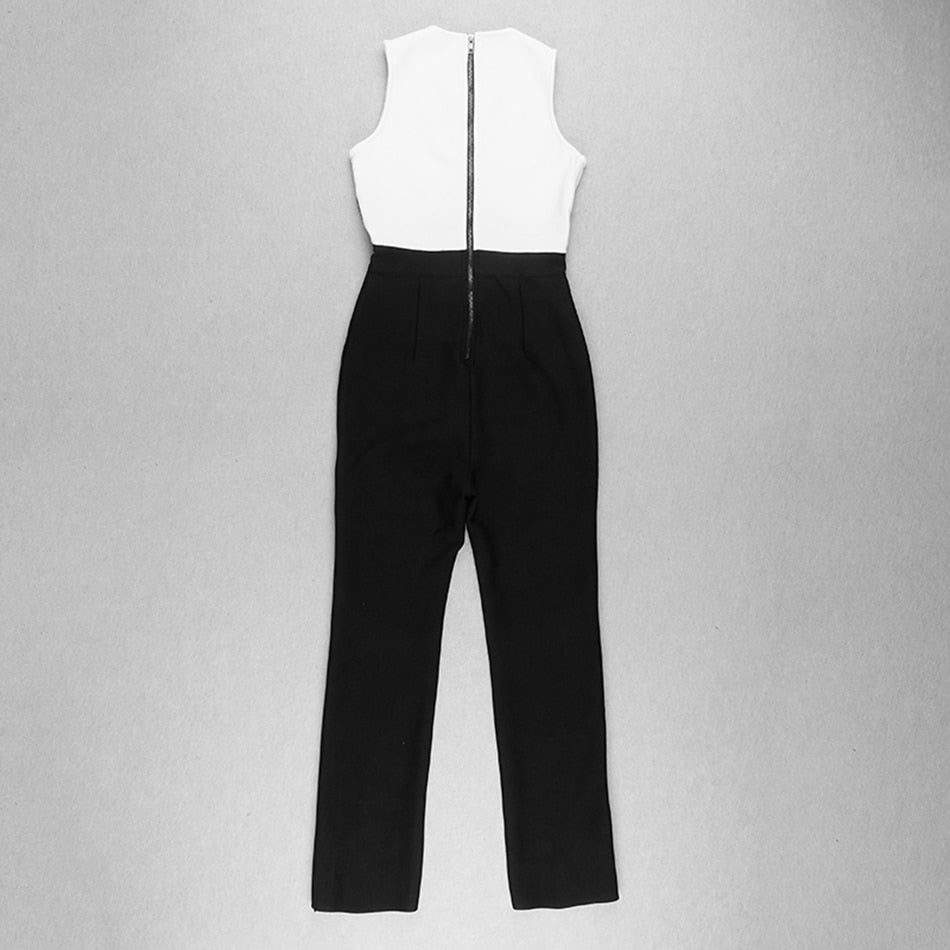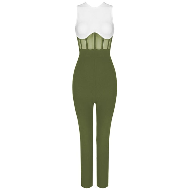 Solid Sleeveless Nylon Rayon Spandex Jumpsuit with See-Through Waist Style