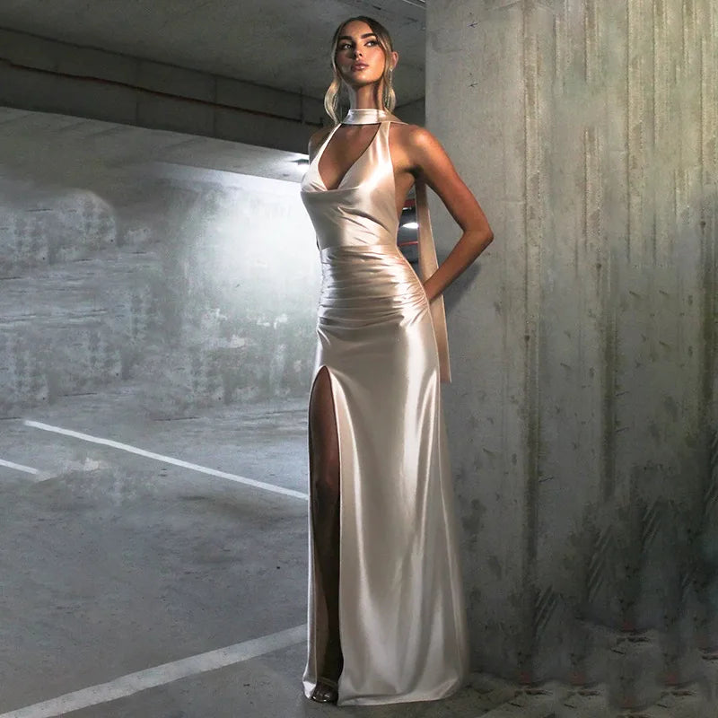 Elevate your evening with the Forever Ends With Us Maxi Dress, crafted from lustrous polyester that catches every light. Its sleek, shiny fabric drapes effortlessly, making a bold statement wherever you go. Perfect for those who dare to stand out, this dress combines elegance with a fearless edge.