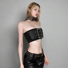 Elevate your summer wardrobe with our Lucid Curse Crop Top! The bandeau style offers a sleek, modern look while the rivet decoration adds a touch of edginess. Made with a blend of polyester and spandex, this top offers a comfortable and flattering fit. Perfect for any occasion, its solid color is versatile and easy to style.