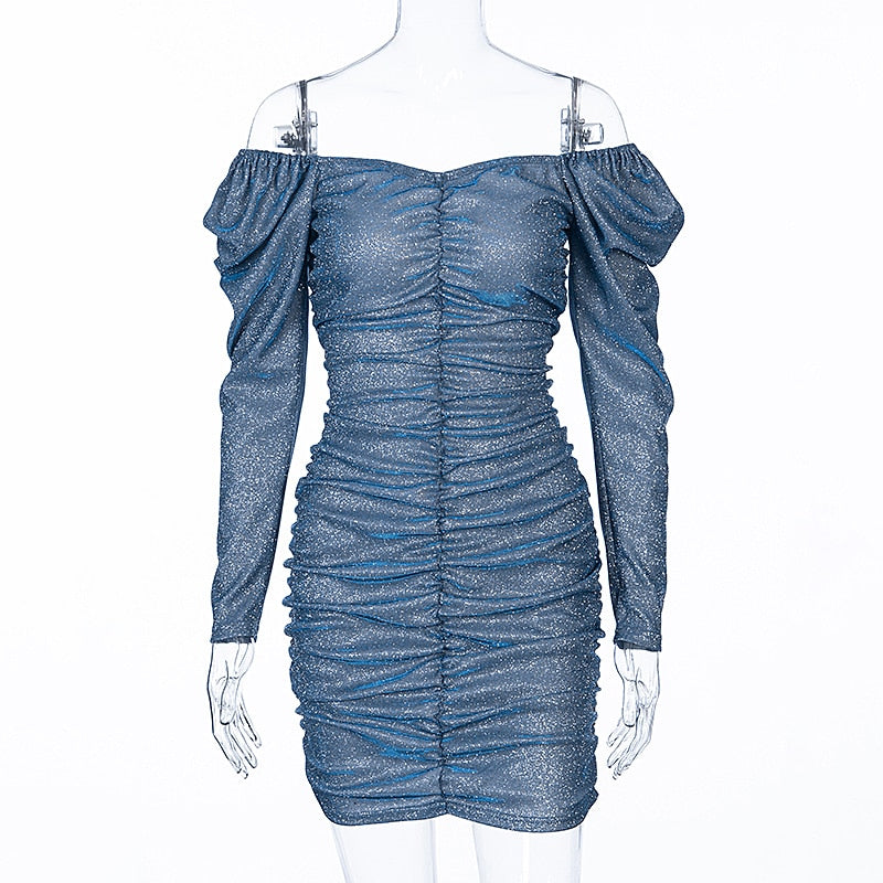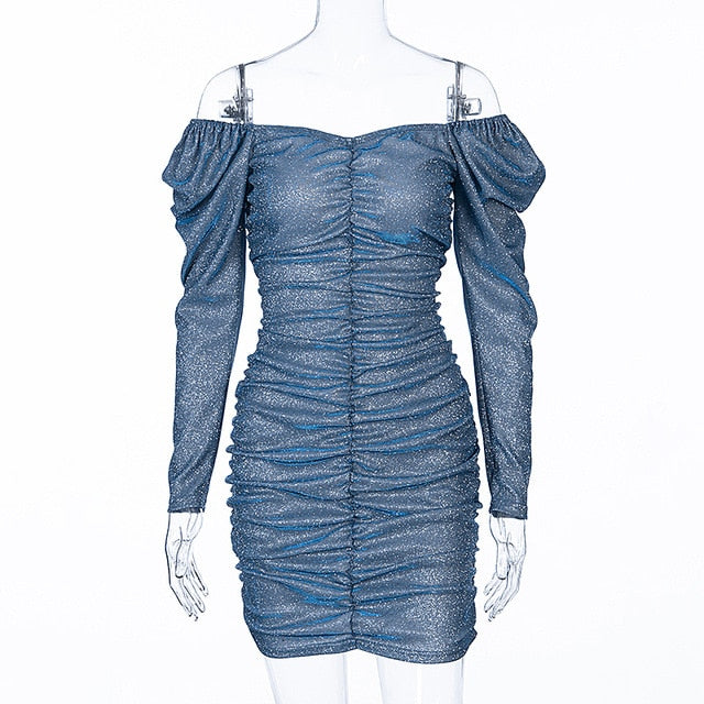 Shining Slash Neck Sequin Long Sleeve Women Mini Dress