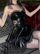This mini dress will have you feeling confident and stylish. Made from PU leather, the slim fit and A-line silhouette flatter your curves while the strapless neckline and lace detailing add a touch of femininity. Easy to wear with a pullover closure and sleeveless design. Perfect for a night out or special occasion.