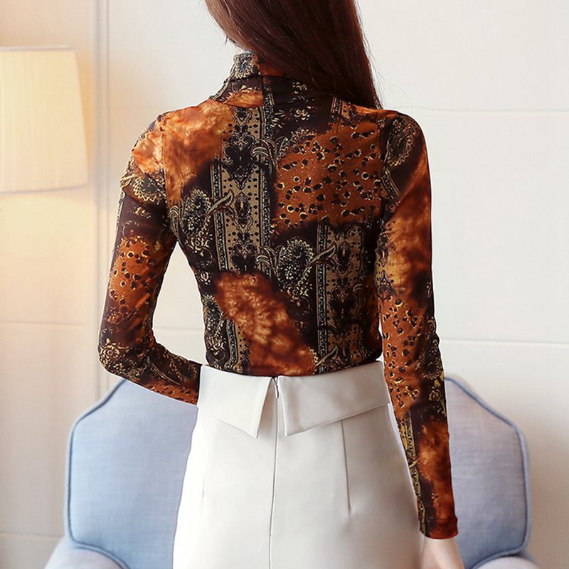 Casual Style Blouse with Print Pattern, Turtleneck Collar, Broadcloth Fabric Type, and Polyester Material